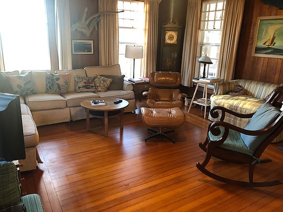 Waterfront on Magical Hines Point - Location, location, location! Proximity to town and the ferry, yet on a quiet peninsula in an exceptional neighborhood. Known as Quawk Cottage, built in 1920, the same family has enjoyed this charming vintage home for over 60 years. The relaxed style of the house, tranquil water views of both sides of the Lagoon, and 152' of private sandy beach which provides summer water activities and great clamming are all elements dreams are made. The four-bedroom, 2 bath home with heat and AC has an expansive yard and great lawn that rolls down to the water's edge. The interior is a pleasant step into the past with many casual rooms for separate activities, 2 fireplaces, a master suite on the first floor, along with 3 unique bedrooms on the second floor.
