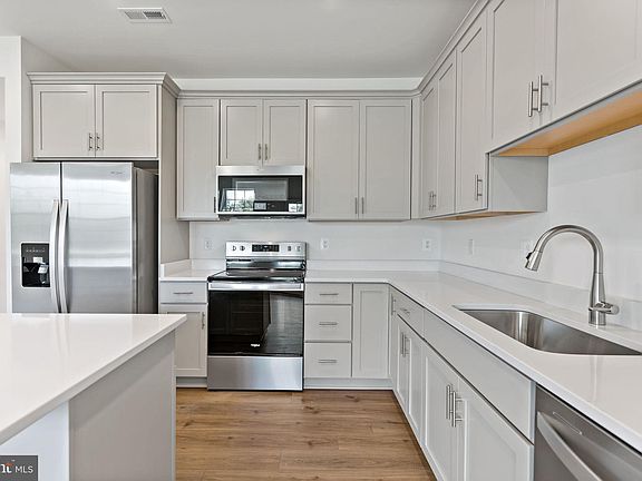 MOVE IN READY! Can close IMMEDIATELY! Meet the Lynnhaven and enjoy main level entry townhome with spacious open floorplan. This beautiful white townhome features a stacked stone water-table, black metal roof accent over the garage and a covered entry. Inside find elegant 9ft ceilings on the main level and a convenient powder room off the garage entrance. An open kitchen to family room is placed in the back of the home for maximum privacy. Brightly lit Kitchen offers a 15 sq. ft. prep island and 42 inch upper cabinets in painted taupe (Willow) shaker style cabinets with brushed nickel cabinet pulls topped with Miami White quartz countertops. The chef in your home will enjoy the single bowl stainless sink and convection oven paired with a convection/microwave oven and side by side refrigerator with water and ice dispensing. Entire main floor is durable waterproof luxury vinyl plank flooring. Step out to a fully sodded yard. Upstairs enjoy a second floor laundry area, linen closet and 2 full baths. The primary bath comes with a step in shower and private water closet. Sized for a king size bed, large walk in closet and 3 windows offering lots of natural light, you will find yourself forgetting you are in a townhome. Secondary bedrooms offer wall closets. Bedroom two is generously sized to fit larger bed and furniture. Home includes added lighting, in family room, bedrooms and ceiling fan rough ins. Wi-fi enabled garage door opener with keypad, and Cable-Data prewires included. There are community sidewalks and trail, overflow parking and common grounds for amenities. Make an appointment to tour our new main level entry townhome with garage - the townhome that lives like a single family home.