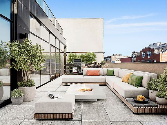Perched on top of The Bath Haus, this one of a kind penthouse spans over 2,000 sqft and features 3 different private outdoor spaces--including a 750 sqft terrace with an elegant gas fire pit and direct line gas grill. There are three bedrooms, one oversized primary with en-suite windowed spa bath and a secondary hammam-inspired bath plus additional powder room. This private full floor home is accessed via keyed elevator, where you are greeted by a sun-drenched 50-ft long great room that leads directly out to the massive terrace. The penthouse at the Bath Haus is the crown jewel of this iconic historical redevelopment, an opportunity like no other in Greenpoint. Originally constructed in 1903 as one of 13 Public Bath Houses in New York City, this architectural jewel has now been reimagined for 21st century living. Unique and distinctive, the facade of the Bath Haus preserves architect Louis H. Voss' original vision, maintains and restores its original architectural elements, and pays homage to the spirit of the City Beautiful movement in New York of which it was born. With only 9 residences, the Bath Haus offers a rare opportunity to purchase a home with architectural provenance in the heart of Greenpoint- quickly emerging as one of the most desirable neighborhoods in all of New York City. With the India Street pier just 2 blocks away (East River Ferry Access) and the G train around the corner, transportation options are bountiful. When you want to stay local there's much to explore including Bakeri, Michellein-starred Oxomoco, hot spot Paulie Gee's, Glasserie, Madre, Transmitter Park, and so much more. Designed by award-winning NYC design firm Meshberg Group- the residence interiors at the Bath Haus are elegant and minimalist. Natural Carrara and Bello marble reference the building’s history, while 7" PID European Oak flooring and oversized custom windows bring warmth and sunlight into each home. Kitchens feature a fully integrated Bosch and Leibherr appliance package with matte white and brushed metal finish cabinetry, and each residence comes with a Bosch Washer and Dryer. There is a common roof deck, available storage, and a common recreational room for resident's use. Closings anticipated 2021. Studio unit also available in the building as a guest suite! *Owner / Broker * THE COMPLETE OFFERING TERMS ARE IN AN OFFERING PLAN AVAILABLE FROM SPONSOR. FILE NO. CD18-0208
