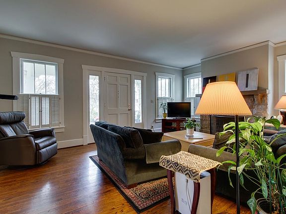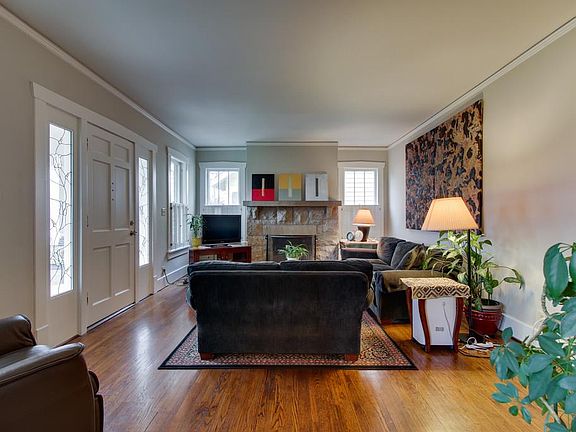 Welcoming front porch* 9' ceilings* Beautiful hardwood floors* Freshly painted interior* L-Shaped, eat-in kitchen with vintage countertops* Stone FP* Upstairs open loft area* Extra storage + full unfinished basement* Large deck* 3 car carport*