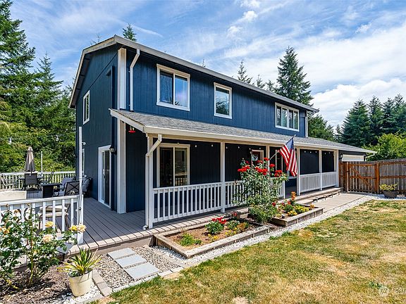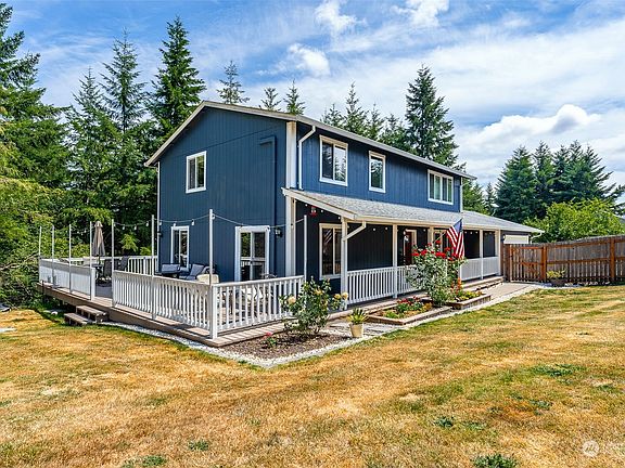 Come see this beautiful home on 5 ac. Relax on the covered front porch and wrap around deck on a quiet private road! 2080 sf home w/3 lg bdrms & 2.5 baths, w/ lg walk in closet in the master. W/big bonus living room downstairs! Stay comfortable w/energy efficient ductless heating and cooling! Newer flooring and paint. Enjoy the outside that features RV parking, shed for lawn equipment, fire pit, fenced front yard & back deck overlooking your nature oasis! Look no further, this home has it all.