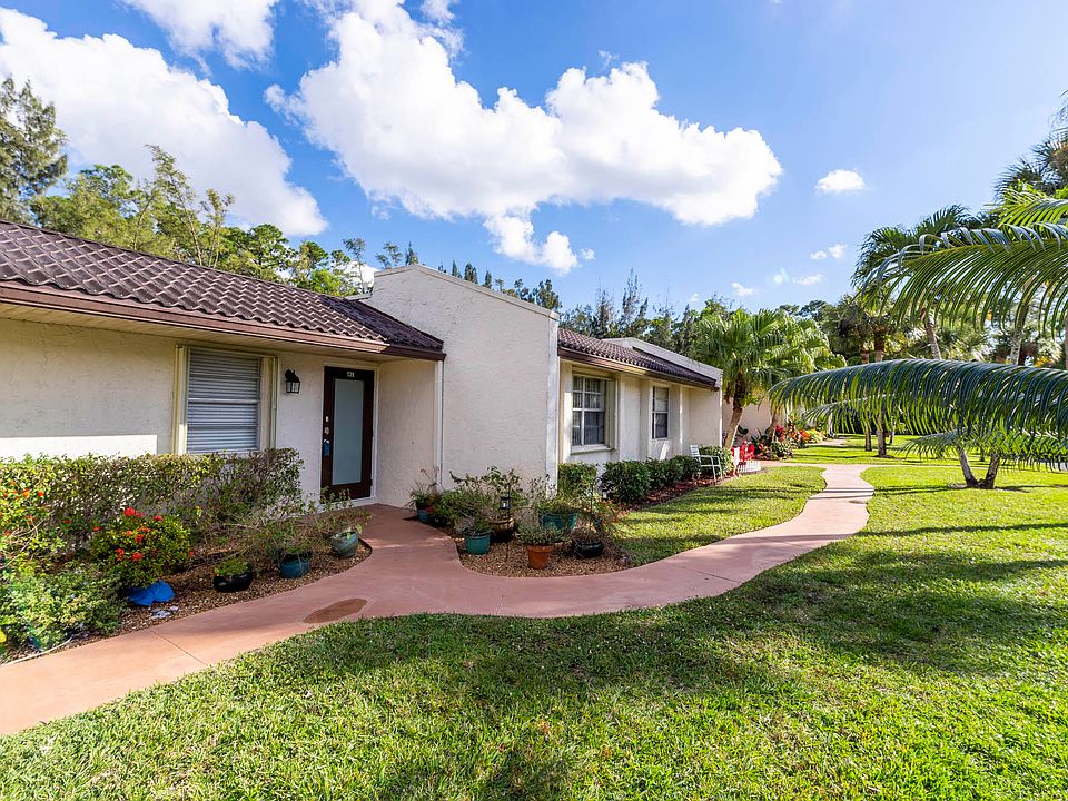 Welcome to this renovated 2-bedroom 2-bath villa in the wonderful 55 and up community in Golden Lakes Village. The beautiful kitchen features custom wood cabinetry, Corian countertops, stainless steel appliances and tile flooring throughout. The spacious living and dining rooms are light and bright with sliding glass doors that open to a fabulous screened in porch that overlooks water views to enjoy with your family and friends. The primary bedroom features a great space with tile flooring and a large walk-in closet with ample storage. In addition, the villa has hurricane protection. Golden Lakes Village is an enjoyable place to live with so many amenities. Close to public transportation, shopping, restaurants, and the wpb airport. Make this your home today!