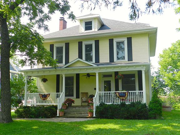 A wonderfully renovated older home on an extra lg lot (over 3/4 acre) in the city. The house has a new roof, new siding, new windows,updated bathrooms, enlarged kitchen, newer deck, and a main floor utility room and master bath have been added. The home features a big front porch, original wood floors, built in corner cabinets in the din.rm. This is a historical home with all the extras!!