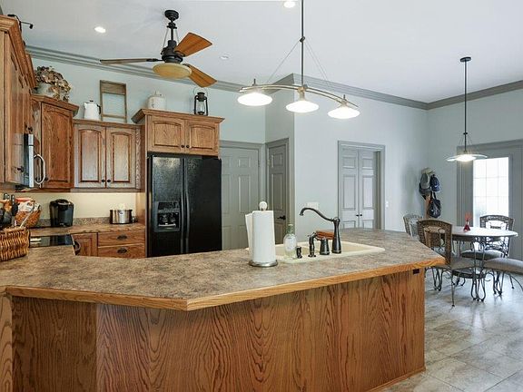All on one level, custom built with two master suites and 10' ceilings this home has an antique fireplace mantel and is move in ready. Formal dining, crown molding, irrigation system and plenty of storage to include a loft in garage for even more storage. Nice lakeview with three covered porches and your minutes from Big Cedar and the Branson Landing. Priced at recent appraisal this home is one you need to see to appreciate! Boat slip is available across the street for additional $$$.