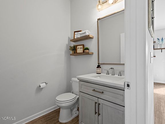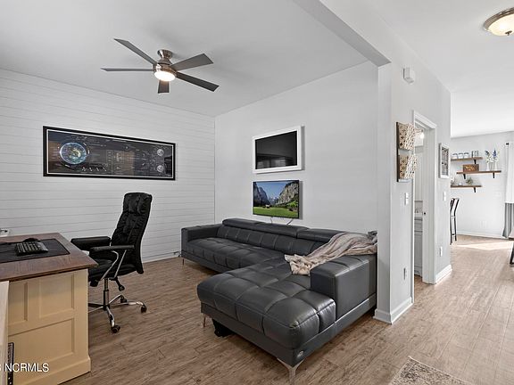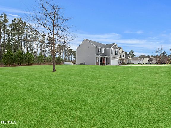 The master bath includes dual vanities, separate soaking tub & walk- in shower. This home features upgrades including granite counters, hand- painted backsplash, recessed lights, maple cabinetry, stainless appliances, and wood-grain LVT floors in living area. Recent additions include accent walls, plantation shutters, outdoor seating area for entertaining, and new roof in 2022. This property is situated on a large lot and is steps away from the ICW with water access, 15 minutes to Surf City/ Topsail Island, & convenient to the beach and bases. Truly a rare find in Holly Ridge, you do not want to miss this one!