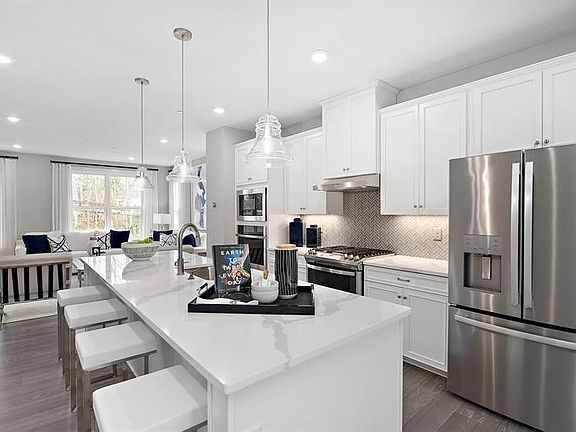 Beautiful Heartland Homes townhome featuring a covered outdoor living space with stone fireplace. Hardwood floors throughout first floor. Luxury kitchen featuring a large gourmet island, quartz countertops, upgraded soft close cabinets & built in stainless steel appliances which opens to your great room. Oak stairs lead to 3 bedrooms and 2 full baths upstairs. Finished basement with additional powder room & two car garage. This home is under construction. Anticipated end of March, 2022 move-in date.