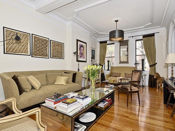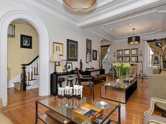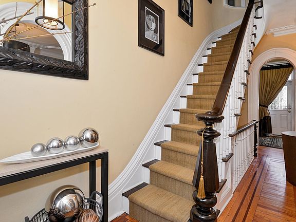 Gracious urban living at its finest in Downtown Jersey City! Introducing this impeccably-restored, 20-foot wide brick row house on one of the Van Vorst Park district's top blocks. This legal two-family has been converted into a stunning one-family residence that has been completely renovated including the restored facade. The open floor plan lower level features a large chef's kitchen with Viking and Sub-Zero appliances, a large island, custom glazed cabinetry, beveled quartz countertops and honed Brazilian slate flooring. French doors in the dining area lead to a professionally-designed, private garden. This level also includes a half-bath. The a double-parlor on the second level with parquet flooring, and original ornate plaster moldings leads to an expansive deck that offers accessibility to the garden. Level three is comprised of two large bedrooms and a full bath with glass subway tiles and a marble vanity. The master suite occupies the entire fourth level. There is a large bedroom with a seating area, walk-in closet and a newly-renovated, porcelain tile bath with an oversize frameless glass shower and Herringbone tile. Other features include high-efficiency Fujitsu mini-split A/C throughout, custom high-end RH lighting & a full height semi-finished basement w/ W/D, extra storage & can be used as a playroom/gym/office.