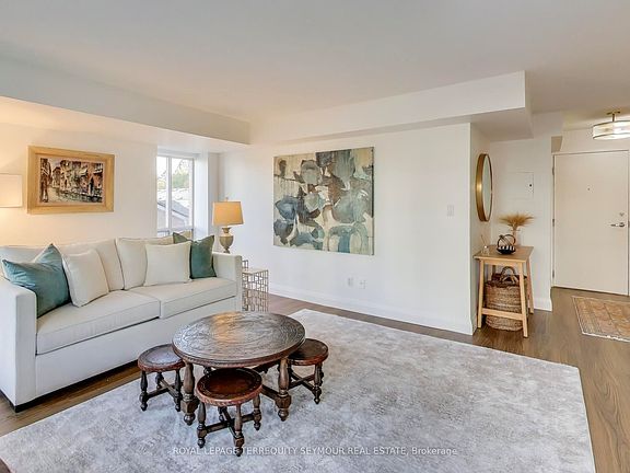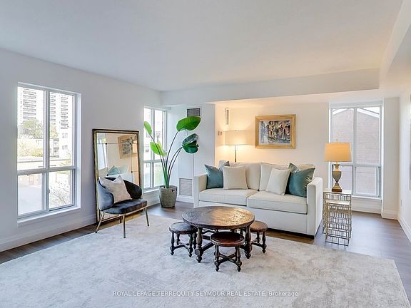 Welcome to The Metro Lofts - a boutique midtown gem in the heart of Davisville Village. This beautifully renovated two-storey loft offers 1,290 sq. ft. of stylish, light-filled living with new laminate floors (2025), a newly-installed oak staircase with designer pickets, a beautiful modern kitchen with quartz counters, pull up breakfast bar, abundant cabinetry with gold accents, and an updated Bosch appliance package make cooking and entertaining a joy. An enormous living room area boasts large windows offering fantastic soft light throughout the main floor, while upstairs you'll find two bedrooms each with their own private ensuite bath, a versatile loft-style den, and laundry with a new Samsung washer and dryer. Both independent HVAC fan coils have been updated and the condo comes with parking and a locker. Steps to the Kay Gardner Beltline Trail, Davisville Subway, Yonge Street shops, and vibrant local dining. A perfect blend of urban convenience and tranquil city living - the kind of home you'll love coming back to.