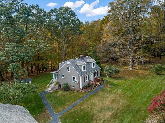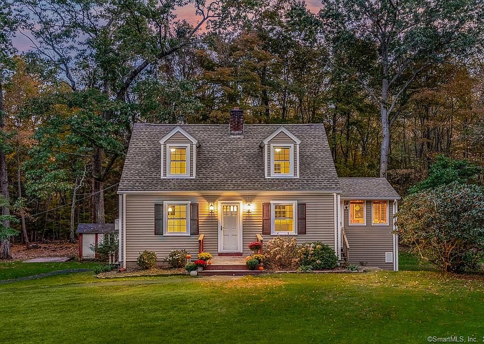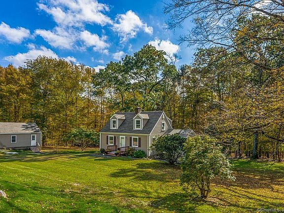 If you are looking to move right in, this meticulously maintained 1,240 sqft. cape is the home for you This home is sure to wow you w/fresh paint, gleaming hardwood floors set on .73 private acre w/numerous updates. The eat-in kitchen has ample cabinets & access to a mudroom leading to the backyard. The elegant dining room is perfect for entertaining guests. The generous sized front to back living room features a magnificent stone fireplace and is a great spot to relax or read a book. A half bath and enclosed porch (could be a possible 3rd bedroom w/the proper improvements complete the 1st floor. The 2nd Floor is comprised of 2 spacious bedrooms & shared full bath. Special features/amenities include: newer roof (30 year architectural shingles, all windows replaced (except on porches, newer siding/gutters on house/garage, newer garage doors as well as entrance door to garage. Blown in insulation into attic, new insulation in dormers & insulated basement where house meets foundation, refinished all wood floors (except for stairs and upstairs landing, newer kitchen floor, kitchen counter tops and backsplash replaced, new overhead lighting (except for top of stairs, newer kitchen stove, Refinished interior stairs and landing at top of stairs. Perfection of location w/easy access to Rt 84, 10 minutes to UConn, 30 minutes to Hartford. Some pics virtually staged. Don't miss out on this turnkey property