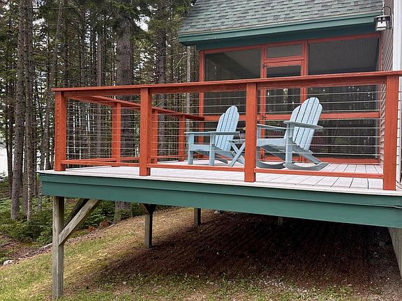 Turnkey ( Fully Furnished ) contemporary cape with 335 feet of owned oceanfront on Pinkham Bay on a double lot with 5 gorgeous acres in Steuben. This home was custom built by Breakwater Design and Build.
