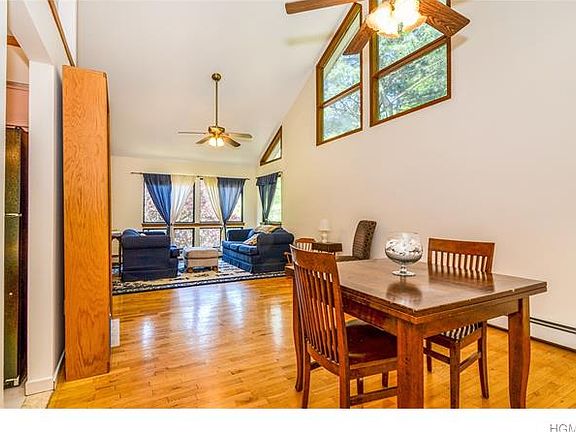 Bright and sunny, cul-de-sac location! Freshly painted interior showcases the spacious living room and dining room with vaulted ceilings and refinished hardwood floors. An oversized kitchen features newer appliances and sliders out to a beautiful deck, set atop large rock outcroppings and offering forested natural privacy. A Large master bedroom with 3 closets, Master bath with soaking tub, 2 cheerful bedrooms plus a newly renovated hall bath offer great living space. The Lower level family room with fireplace, 4th bedroom, full bath with newly tiled stall shower, Lots of storage, laundry room, raised panel doors and 2 car garage with new doors, new driveway and newly installed above-ground oil tank. Enjoy the community pool, clubhouse and tennis courts. Taxes do not include the STAR reduction of $1,519 for North Salem Schools. 1.5 miles to RR. Come see and fall in love!
