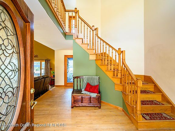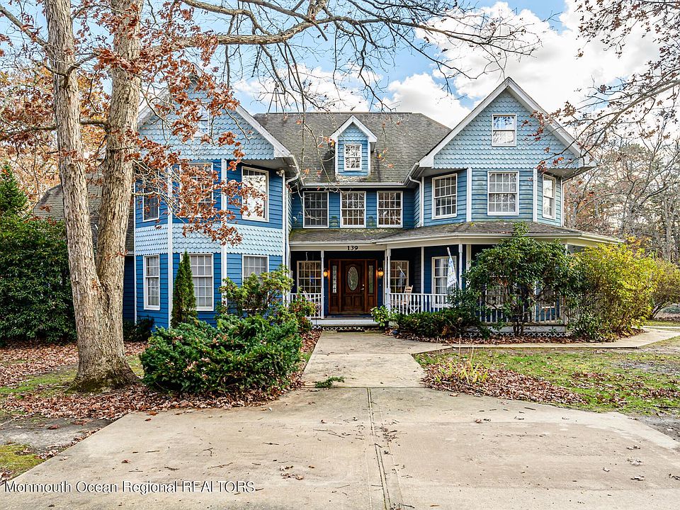 Beautiful 5 Bed 2 Full Bath, 2 Half Bath Victorian Home with In-Ground Pool & Detached Garage is bursting with possibilities, just awaiting your personal touch! Situated in a serene setting on a quiet subdividable wooded lot of 5 plush acres, with over 3600+ sq ft of living, it's the perfect, peaceful forever home to settle & grow! Covered wraparound rocking chair Front Porch + scalloped detail add charm & curb appeal. Step in to find a spacious interior with large room sizes & plenty of natural light throughout. The main level offers a 2 Story Foyer with HW flrs, Formal Dining rm, Family rm, convenient 1/2 Bath + Mudroom and Laundry rm. Impressive 2 Story Great Rm is the heart of the home with cozy Fireplace + floor to ceiling mantle. Large Eat-in-Kitchen offers a center island, ample cabinet storage, ceramic flrs & sunsoaked Dinette space. Down the hall, 2 generous Bedrooms, inc the 1st Floor Master Suite with Full Bath & Fireplace that is accessible & sure to please. Upstairs, the main Bath + 3 more sizable Bedrooms - 1 with it's own private 1/2 Bath + Balcony! Huge Backyard with multi-lvl Deck was made for entertaining, complete with large In-Ground Pool that is completley fenced-in for your privacy! Tons of extra space to build + create on this double lot - opportunity to subdivide & build a 2nd Home! Oversized Detached Garage, House Generator, the list goes on! Don't wait! This could be the ONE!