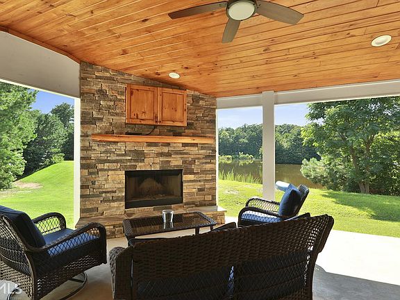 UNIQUE LAKE FRONT CRAFTSMAN STYLE HOME W/ IMPRESSIVE OUTDOOR LIVING SPACE! Enjoy this ideally situated cul de sac home w/ lg covered Porch & outdoor Stone Fireplace w/ TV hookup! You'll love the water & nature views from back of home. Cool Look, fresh bright interior & very open Floorplan. Granite counters & center Island, SS Appliances inc Frig + 2 pantries. Hardwoods & tile on main & Dining rm w/ trendy light. Spacious Master w/ lg sitting rm & 2 lg closets - Oh Yeah! Lg tiled Shower, garden tub & dbl vanities. Good sized closets in bedrms. Covered front porch & beautiful stacked stone exterior. Large 2+ acre lot w/ lush lawn, wooded area & lake access/views...perfect for canoeing/fishing. Long sweeping driveway, side entry garage & no HOA. Newer Roof