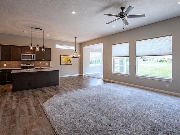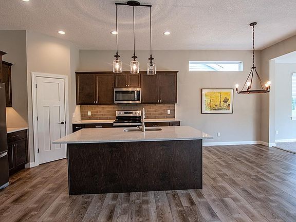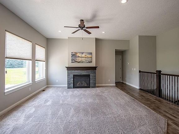 Gorgeous 3 bedroom, 3 bathroom ranch close to North Scott Schools. This three-year old, stunning home offers zero-step entry, ADA-compliant wide doors and hallways, and Award-Winning Diamond Builders construction. The open concept eat-in kitchen has quartz counter tops, a large island, and opens into a spacious living room with a fireplace and sunroom. Both rooms have large windows that let in bright natural light. Off the owner's suite is a large closet to the laundry room, which has an extra closet for storage. The main floor offers a second bedroom and a full bathroom. The basement area offers a fully finished 3rd bedroom and full bathroom as well as a HUGE unfinished storage area. This maintenance-free home has an extended patio off the sunroom and has a 220 volt outlet making for an easy hot tub install. There is also a 2 car attached garage and an affordable HOA which covers all lawn care and snow removal. Additional items staying include all kitchen appliances, washer and dryer.