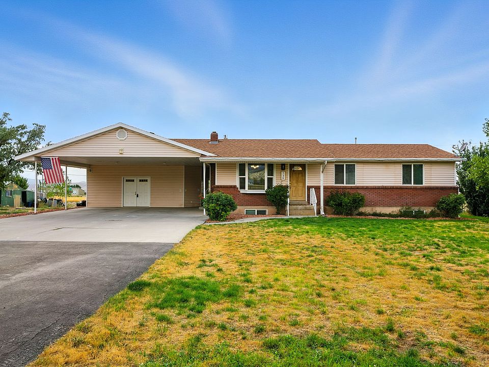 WOW!! COUNTRY LIVING!! GREAT RAMBLER STYLE HOME ON 1/2 ACRE! HORSE PROPERTY! LOTS OF ROOM For Your TOYS! OVERSIZED Attached 2-CAR CARPORT w/WORKSHOP(TOOL SHED)! The FLOORPLAN IS OPEN w/LOTS OF NATURAL LIGHT! SPACIOUS LIVING ROOM UPSTAIRS and DOWNSTAIRS! NEWER PAINT AND CARPET! UPDATED BATHROOM! GAS FIREPLACE Upstairs plus a WOOD BURNING Stove Downstairs! COLD STORAGE w/Built In Shelves! New Water Heater!