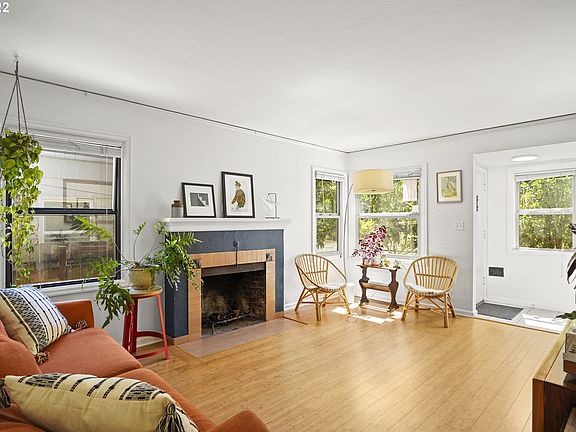Best of both worlds with good systems & just the right amount of vintage charm. You'll find a cozy wood burning fireplace in the living room, the dining room features a garden window & stylish lighting, & the kitchen boasts an original built-in + timeless tile. Circular floor plan on the main level for maximum efficiency. Detached garage for the hobbyists has french doors & lots of natural light. Unfinished basement with tall ceilings, side door, and potential! ADU? Landscaped & move-in ready. [Home Energy Score = 5. HES Report at https://rpt.greenbuildingregistry.com/hes/OR10032356]