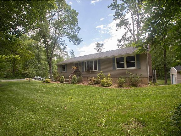 Welcome to an extraordinary, homestead-ready residence, where the pristine beauty of nature is seamlessly blended with modern comforts. Imagine a sanctuary, perfectly tucked away amidst protected recreational land, teeming with wildlife, yet located close to key amenities. This is not just a home; it's a haven. From the moment you enter, you are greeted by an abundance of natural sunlight that streams throughout the house, casting a warm and inviting glow. The seamless transition from indoor to outdoor living spaces is sure to leave you spellbound. The secluded setting creates an ambiance of peace and tranquility, while the proximity to major roadways, schools, shopping, & town. Stunning sunrises from the comfort of your four-season sunroom and convenience of a home gym for workouts. The manicured landscapes, generous gardens, complete with a greenhouse, invites you to savor the joy of farm-to-table meals. The splendid interior boasts (3) bedrooms, eat-in kitchen, a formal dining room, and a recreation room. The home also features 2 baths, a practical mudroom, a laundry and storage room for optimal organization. The property further impresses with a four-car garage, complete with a heated studio loft. For the avid gardener, a detached one-car garage for lawn equipment is an added perk. The expansive pool, accompanied by a patio and deck, promises endless summer fun. The tranquil sounds of the babbling brook add to the idyllic charm.  Don't let this rare opportunity slip by.