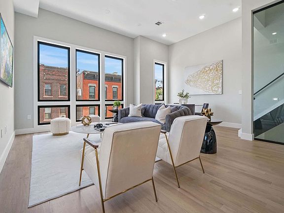 Welcome to 139 New York, a Luxurious New Construction 3 bedroom 2 full bath duplex designed by one of Jersey City’s top Home Builders, Blue Chip Properties, known for their modern interior design, high end finishes and quality craftsmanship. This home is the sough area enclave of New York Ave, minutes from Hoboken, Light Rail, Riverview-Fisk Park and Palisades gourmet restaurants! Your main floor enters into an open concept Dining Room / Living Room featuring 12 ft high walls lined with Andersen windows flooded with natural light. The living space feels large and airy due to the Floor to Ceiling Glass spanning the entire length of the wall. Your Chefs kitchen features Top-Line two tone cabinetry, WOLF Stove, smart stainless-steel appliances, pot filler, waterfall quartz center island and countertops backed with luxurious porcelain backsplash and accent lighting. Main level features Primary bedroom designed with custom millwork, modern bedside lighting, barn door walk in-closet and large picturesque private balcony. Your ensuite bath has been designed with modern yet warm natural tones to create a spa like ambience. Two additional bedrooms with finished custom closets and laundry room complete your main level. Your private rooftop showcases unobstructed NYC views from downtown to midtown which provides an exceptional ambience to your entertainment space. The rooftop area also features a custom interior wet bar as well as gas, water and electric exterior hookups. Full Smart Home technology allows for ease of living, complete with Google Nest doorbell, Google thermostat and smart hub, Lighting Dimmer Switches, and more all accessible via smart phone. Garage features non-tandem parking and High Voltage EV Charging outlet for each unit. Property comes with 5 Year Tax Abatement and 10 year warranty.