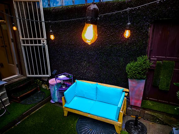 Garden enthusiasts welcome! Your own private backyard which is pin drop quiet! Super safe with iron wrought gate that locks so you can have a lovely breeze throughout apt all day and night. Includes outdoor shed, teak couch with cover and wall unit as well as pet proof astroturf. Dogs are welcome! This is a well maintained building with live in super. Storage is available in the basement. Apt is newly renovated which includes brand new washer/dryer, dishwasher, stove and ac units! Hooded exhaust fan above stove is vented to the outside as well as fan in bathroom plus widow. Unique apt. Hand crafted pendant lighting fixtures, ABC Carpet fixture in bathroom. High ceilings provide airy feel. French doors separate bedroom with 2 large closets. Real stairs up to sleeping loft with window. Built in dresser, tall cabinets and hidden storage underneath stairs. Alcove makeup area.