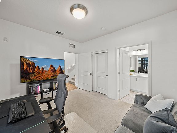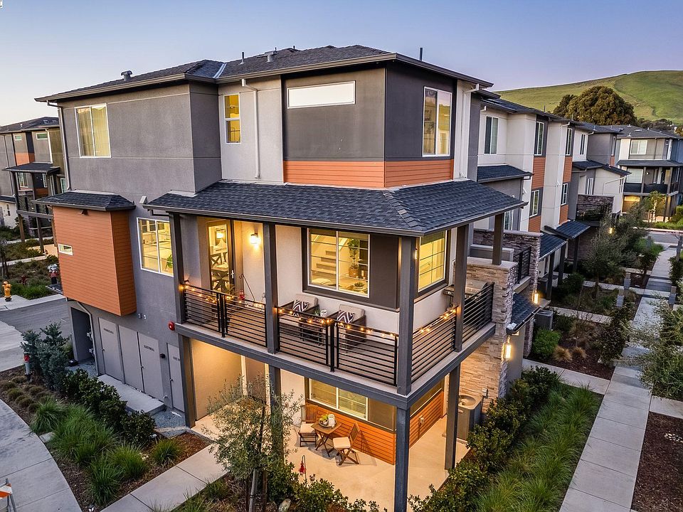 Discover unparalleled modern living at 139 Notion Way, Hayward. This townhome-style condo spans three levels, blending contemporary design with ultimate comfort. The ground floor features a bedroom with an en-suite bath and additional storage, accessible from the cozy front patio or the two-car garage. The main level hosts an open-concept living space that transitions smoothly from the living room to the dining area, kitchen, and covered deck—perfect for both quiet family time and entertaining. The kitchen shines with stainless steel appliances, quartz countertops, a large island, tile backsplash, and a walk-in pantry. Upstairs, bedrooms with private en-suites await, including a primary suite with a double vanity, walk-in shower, and closet. Upgrades enhance the kitchen, baths, and flooring. Its prime location is near Mission Hills Golf Course, Garin Regional Park, with easy access to BART and highways, making this end-unit a gem in the heart of Hayward.
