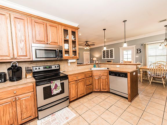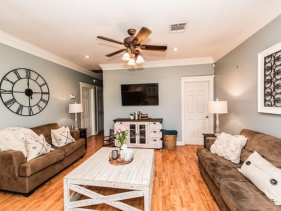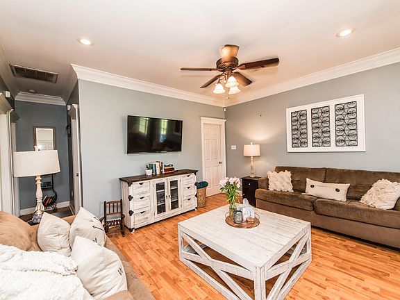 This home is move-in ready!! Beautiful colors, ceramic tile and wood laminate flooring. Great kitchen with snack bar opens to living room. Nice laundry room. Spacious master suite with walk in closet. Bedrooms have ample storage space in their closets! . Double crown molding throughout, awesome woodwork around all windows and door frames. Enclosed garage with extra storage for outside items. Landscaped front yard. Incredible covered back patio with large field behind for great views. No detail was missed in this home. Qualifies for 100% RD financing. Owner/Agent