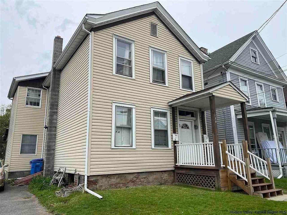 Centrally located in Kingston we have a 2 family in great shape. Upstairs could be a 3 bedroom if necessary but set up as a 2 bedroom.. Front and back stairs for access. Tenant up is in the process of leaving..Great for owner occupied .. Have one unit pay your mortgage.. Downstairs is spacious with a fabulous kitchen that walks out onto the porch. Back yard is almost completely fenced in.. Large driveway with plenty of off street parking.. Located between the Strand and uptown Kingston! Trailways and I-87 are real close too.