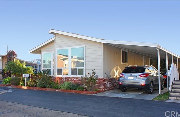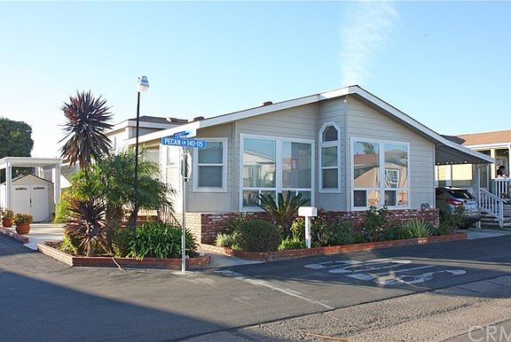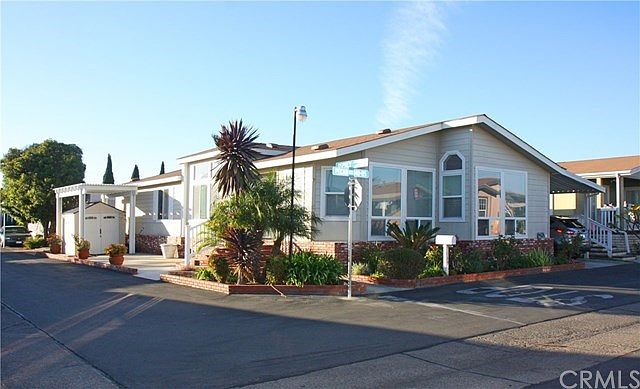 This Beautiful Manufactured Home with 3 Bedrooms, 2 Full Bathrooms, and Nearly 1,600 Square Feet is Light, Bright, and Airy with an Open Floorplan, Cathedral Ceilings, and Lots of Windows. It Boasts an Outstanding Location on a Quiet Interior Corner Lot. It Features Central A/C, Wood Laminate Flooring, Raised Panel Interior Doors, and Raised Panel Closet Doors. The Huge Chef's Kitchen has been Upgraded and Includes a Center Island with Bar Seating and Designer Pendant Lighting, Tile Countertops, Lots of Natural Wood Cabinetry, Recessed Lighting, Stainless Appliances (Gas Stove, Microwave, Dishwasher) and a Charming Sunlit Breakfast Nook. This Lovely Home Includes: a Large Living Room, a Banquet-Size Formal Dining Room, and Inside Laundry Room with Utility Sink and Storage Cabinets, a Spacious Master Suite with Double-Wide Closets and a Luxurious Bathroom with His and Her's Vanities with Sinks, Built-In Linen Cabinetry, a Romantic Soaking Tub, and an Oversized Separate Shower. There are 2 Nice Secondary Bedrooms and a Guest Bathroom with a Tub/Shower Combination. This Home has a Gorgeous Exterior with Brick Siding, a Lovely Patio, Custom Shed, Brick Steps Leading to Front Door, Covered Parking for 3 Cars, and Professional Manicured Landscaping. It is Located in a Highly Desired Family Community with Heated Saltwater Pool, Spa, Basketball Courts, Clubhouse & Onsite Management! Close to Beach, Mile Square Park, Shopping, Restaurants, and Award-Winning Schools.