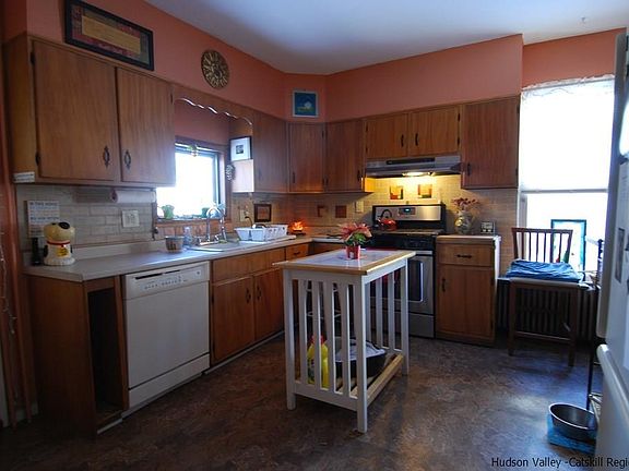 HISTORIC VICTORIAN IN ONE OF THE BEST LOCATIONS IN KINGSTON! This lovely Victorian house is on one of the nicest streets in all of Kingston. A tree lined French style boulevard leads to the historic Wiltwyck Cemetery, designed by Frederic Law Olmstead, designer of NYC's Central Park and Prospect Park. Adjacent at the end of the boulevard stands this stately, yet manageable home, with blue stone flagstones front and back, a sizeable back garden and quiet year round. Walk in the park-like area next door or walk down the center of the boulevard to burgeoning mid-town Kingston. A high-end photo studio is to occupy the loft building at the other end of the street, and the YMCA, UPAC, and restaurants are just past the corner of Broadway. The house has spacious living areas, beautiful old wood details and a partially finished, full attic with 3 office spaces. The owners have upgraded the mechanicals with efficient, natural gas, on-demand hot water and heating, and new solar panels which generate most of the electricity you'll need to use. The house has been re-insulated from foundation to rafters with spray foam insulation, and has energy efficient windows. Everything has been done right to keep the costs of running the house as low as can be. This place has it all, elegance, convenience, privacy and quiet. It's just waiting for you to make it your own.