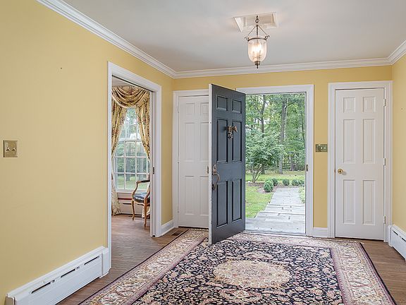 Timeless Bernardsville Mountain Colonial Traditional elegance describes a classic Bernardsville Mountain Colonial surrounded by five acres of open, level and secluded privacy. Graciously appointed public and private spaces are filled with natural light, offering an ideal setting for fine living. Measuring over 4,200 square-feet, the open floor plan contains four bedrooms, three full baths and two powder rooms plus an attached three-car garage. Situated minutes from Bernardsville's vibrant downtown for shops, eateries and Midtown Direct trains, its location is also close to a network of local and interstate highways. This sublime property also has a Far Hills mailing address. Authentic center hall Colonial architecture begins in the graceful foyer featuring hardwood floors, a curved staircase and detailed millwork. Flanking this entry are formal living and dining rooms, each fitted with pocket doors, crown moldings, chair rails and hardwood floors. The living room's focal point is a wood-mantled fireplace, while French doors in the dining room reveal a private bluestone terrace. The home's second fireplace lends warmth to the wood paneled study, where a charming window seat overlooks tranquil views. The welcoming country kitchen is designed with a roomy center island, granite countertops, terra cotta-style tile floors, a custom tile backsplash and full complement of appliances. An adjoining bay windowed family room is centered by an oversized brick fireplace encased in wood paneling. A door opens to the screened porch, a cozy spot for casual gatherings. Completing this level are spacious mud room and powder rooms. Upstairs, the serene master suite includes a fireside bed chamber, walk-in closet, roomy sitting area and dual master baths. Three more sun-splashed bedrooms share an expansive full bath. The partially finished basement is another amenity in this exceptional residence. Bernardsville in Somerset County is renowned for its grand estate properties and proximity to outstanding public and private schools, recreation, cultural venues and world class golf and equestrian facilities. Commuters appreciate Bernardsville's easy access to Interstates 78, 287 and Newark Liberty International Airport.