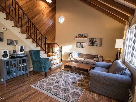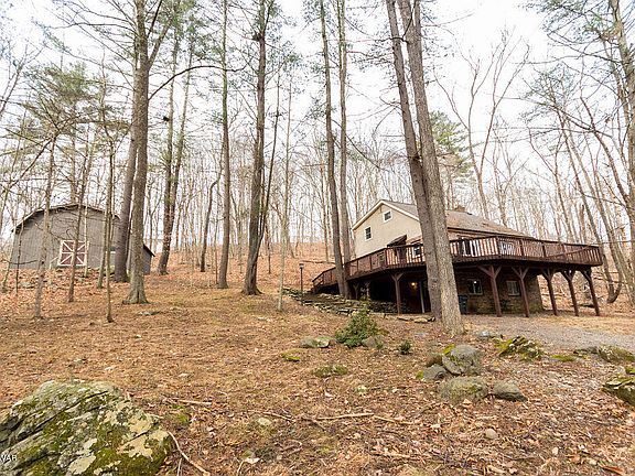 Move in condition chalet home plus large barn (27 x 27) for workshop, storage and more. This private oasis is perfect for getting in touch with nature and only a short walk to trails in the Delaware Water Gap. Features include 3 bedroom, 2 full baths, open floor plan, large family room plus a spacious wrap around deck for entertaining. Updates and Upgrades throughout. Convenient to Milford Rd and NJ commutes.