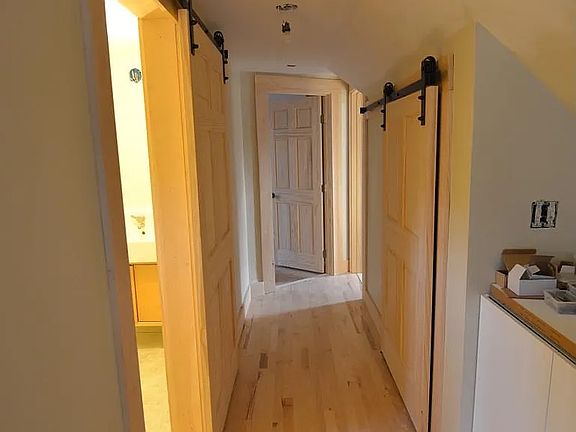 This tree-house-like 2 br apt was completely and tastefully renovated. All porcelain and hardwood flooring, new ikea kitchen with new appliances including a dishwasher. Sliding barn doors on bathroom and closet. It is a very private space because the building is nestled in a hill and the back views are a wooded slope. The building is also protected from flooding because of being on higher ground. Heating is inexpensive with a new rinnai heater in the main space and supplemental electric heat in the bedrooms. The apartment is very well insulated and has custom high quality super-insulating windows. It is on the 3rd floor so is very private and feels like a fourth floor because the house is uphill from the street. The back side is a steep hill covered with trees offering complete privacy. Right in downtown Johnson, so walking distance to all shops, cafes, laundry, etc. Security deposit of 1 month, plus first and last months rent due upon signing the lease. Applications include landlord and employment references as well as credit/background check, plus proof of income of 3x the rent. No smoking.
