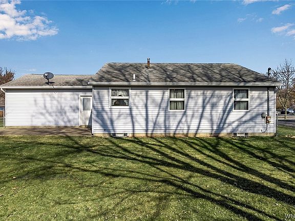 Welcome to this charming ranch home nestled in the Village of Hilton. Upon entering, you're greeted by a spacious living room featuring a vaulted ceiling. The master bedroom features an ensuite bathroom and walk in closet. Continuing to the back of the home, enjoy two additional bedrooms, both with ceiling fans, and an additional full bathroom. The house features Anderson windows and newer hardwood floors in the living areas. In the kitchen, you'll find ample counter space, oak cabinets, and tile floor. Completing this home is a dry basement, offering additional storage space or the potential for future expansion. Newer sump pump and A/C, fenced in yard with concrete patio, and 2 car garage. New plumbing in basement (2024), roof (2008). Kitchen appliances negotiable. Showings being at the open house on Wednesday, 2/28 at 5pm. Offers, if any, will be reviewed at 2 PM on Tuesday, 3/5.