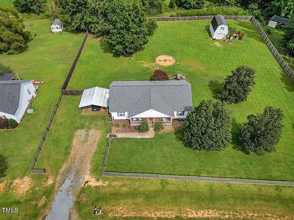 Welcome to this one story home in desirable Clayton w/ rocking chair front porch that sits on 1.66 acres with NO HOA!! The Living Room w/ Cathedral Ceiling and Gas-Log Fireplace is spacious. The Dining Room is great for entertaining. The Kitchen features white cabinets, granite counters and stainless steel appliances. Primary Suite w/ cathedral ceiling offers 2 closets & a primary bath w/ dual vanities. The other 2 Bedrooms are spacious w/ ceiling fans. Laundry Closet for convenience w/ washer + dryer hook-ups. New Carpet! Outside, enjoy the private, fenced-in yard w/ a deck, massive storage shed w/ bonus area and plenty of space for outdoor fun! Great Location - just minutes to 70 bypass, Downtown Clayton and Shopping!