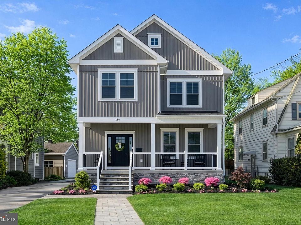 Exceptional, truly turnkey, all New Construction home built in 2021 by Haddonfield Home Developers. Known for superb attention to detail and superior craftsmanship, HHD Builders consistently delivers homes that are among the most sought-after in Haddonfield. The sellers love their current home so much, they are building a new home with HHD Builders as they embark on their next chapter! This is a true testament to a quality builder and now this stunning home can be yours in 2026. Located in the Estates, ideally located on a prime street, this home is walkable to everything you love about downtown Haddonfield, shops, dining, community events, Tatum Elementary School and the PATCO station for easy commuting to Philadelphia. Designed to maximize space and functionality for everyday living, this home offers approximately 4,463 square feet of open, modern living space, including a fully finished basement. The layout includes 4 bedrooms, 3 full bathrooms and 2 half bathrooms. The exterior is a beautiful blend of modern and farmhouse design, featuring striking architectural details and a welcoming front porch, perfect for relaxing and connecting with your new neighbors. Inside, the home showcases 6-inch-wide plank hardwood flooring throughout the main living areas, along with elegant wainscoting, crown molding, and 5¼-inch baseboards. Just off the foyer is a private home office the current owners have made into the ultimate Eagles football room with a wet bar, beverage fridge, custom cabinetry, quartz countertops that can easily be converted to a home office or formal dining space for entertaining family and friends! As you continue on to the main living space on the first floor you will find a spacious coat closet and a first-floor powder room. The heart of the home is the open-concept dining area and gourmet kitchen, perfect for entertaining, watching over your little ones as you cook and enjoying the day-to-day family life with a perfect open flow to the family room. The kitchen features 36” + 12” cabinetry, quartz countertops, tile backsplash, stainless steel appliances and a large center island. A cook’s dream walk-in pantry provides ample storage for all your kitchen storage needs. The adjoining family room is both inviting and impressive, with coffered ceilings and a gas fireplace with a custom wood mantle, creating the perfect space to gather with loved ones. Completing the first floor is a thoughtfully designed mudroom with custom cubbies and lockers, conveniently located off the driveway entrance. Upstairs, the quality finishes continue with detailed trim work and hardwood flooring. The second floor includes two generously sized bedrooms, a hall bathroom and second-floor laundry. And you will be pleasantly surprised to find the the spacious primary suite spans the entire back of the home on the second floor featuring two large walk-in closets and a spacious en-suite bathroom with a luxurious soaking tub, stall shower, double bowl vanity, linen closet, private toilet area with ample space to enjoy your primary bathroom with your partner. A true primary suite oasis! As you make your way up to the third floor you will find a fourth bedroom suite with a full bathroom and walk-in closet. The finished basement provides versatile additional living space, ideal for a home theater, gym or playroom, and includes a powder room—perfect for entertaining and family movie nights. Step outside to your fully fenced in backyard, offering endless possibilities to create the outdoor space you’ve been dreaming of—all while enjoying city like living with the walkability to downtown Haddonfield and Westmont for the ever so popular bar restaurants. You cannot beat this location offering the opportunity to enjoy a stroll around the neighborhood with your littles in this beautiful community, neighborhood block parties, close to playgrounds, coffee shops and so much more all located within Haddonfield’s award winning school system!