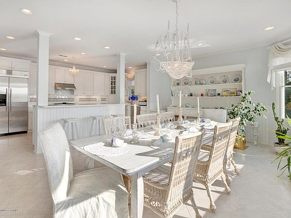 Spectacular home with resort-like features. This Seashore Colonial spans over 4,000 sq ft with 4 guest suites, a master suite with vaulted ceilings, balcony & a very impressive master bath with steam shower plus jacuzzi. Main floor offers 9 ft high ceilings, living room with fireplace, built-ins & a wet bar. In addition, gourmet kitchen with Island and dining room that can easily accommodate 8 guests. The exterior grounds are also impressive with custom swimming pool with wrap-around porches. Also included - a sauna room with a shower, private beach membership and your very own putting green. This home is ''turn-key''