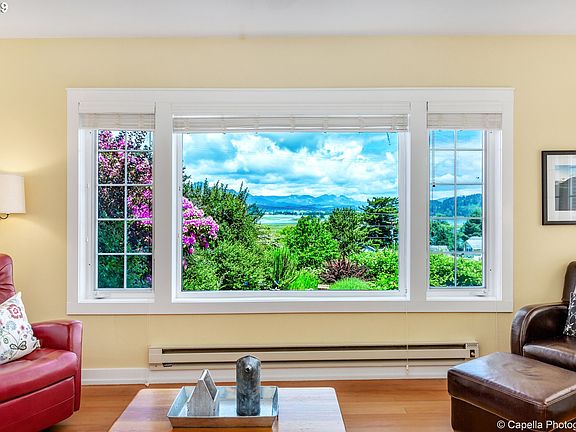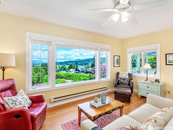 Water & Sky! Spectacular views over Nehalem's Bay, River and Onion Peak Mountain. Charming home centrally located in neighborhood south of Downtown Wheeler. Manzanita & Rockaway Beach just minutes away! Living room has an open brick fireplace. The restored wood floors is a true show stopper. Front porch & flagstone patio allow you to take in those views. Large backyard for those w/ green thumbs. Bonus space upstairs off bedroom.