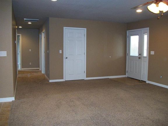 Newer ranch style home with full unfinished walk-out basement. 2 bedrooms, 2 baths, 12 x 14 hobby room (could be used as a 3rd bedroom). Open living area, covered front sitting porch. 1/2 acre lot in town.
