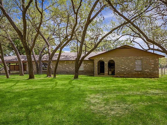 Reimagined ranch style home in Boerne on over an acre- studded by nearly 75 trees. Mid-century modern with a contemporary flair, this home has been remodeled and updated in 2020-2021. Wood style flooring accents much of the open concept living of this home. Central living with fireplace flanks the dining and kitchen. Waterfall quartz counters on the breakfast bar and glass back splash plus a bar/prep area that make it an entertainer's dream. Large secondary living is light and bright with views of the parklike grounds. Large office/third living has outside access and has great storage. Bedrooms are nicely sized and the primary suite has a spa like bath and ample closet space. Big back deck to enjoy the evenings with a retractable shade. Dog kennel in the back, large 30 x 20 storage building with guest house potential. Parking is covered and there is separate parking on the lot. Easy access to all that Boerne has to offer in this private acreage setting