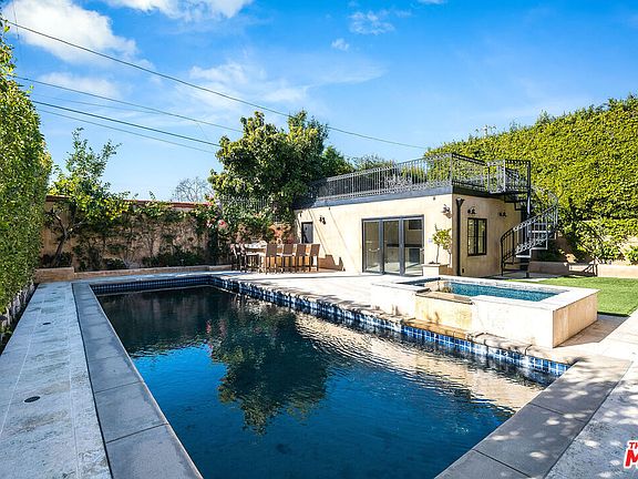 Exquisite, single story Spanish oasis on a picturesque tree-lined street in the highly coveted Beverly Grove neighborhood. Boasting 3 bedrooms plus a pool house and 4 baths, this meticulously remodeled home is designed for optimal comfort & entertainment. Step into the backyard paradise, complete with a salt-water pool, spa, built-in BBQ, creative space, and a rooftop deck providing breathtaking views of the Hollywood Hills.The residence is bathed in natural light, courtesy of its large windows, creating an airy and bright atmosphere. The luxurious primary suite is a haven of comfort, featuring a cozy fireplace, a walk-in closet, a spa tub, and a steam shower with a built-in bench. Hardwood floors, along with marble finishes, contribute to an overall feeling of quality in design. The living room, adorned with a large brick fireplace, vaulted ceiling, and arched window, is the perfect retreat. The state-of-the-art kitchen is equipped with top-of-the-line stainless steel appliances, a separate pantry, an open-concept formal dining room, and a breakfast area. For added convenience and security, the home is pre-wired for a security system and features NEST climate control. Ideally located near popular restaurants, coffee shops, and shops on West 3rd, with The Grove and Beverly Center just a minutes, this residence offers endless possibilities for comfortable living, entertainment and shopping.