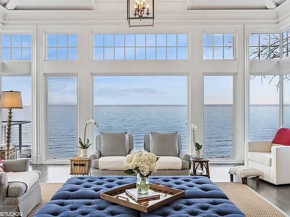 Summer is right around the corner, and 139 Sheridan is the ultimate lakefront escape. Built into the bluff and just steps to the water, this turnkey Morgante Wilson custom home is designed for effortless lake living. One of the last new construction homes allowed to build into the bluff, it offers a front-row seat to beach days, boat rides, and unforgettable summer memories. Incredible panoramic lake views from all rooms, picture perfect crisp navy, blue cedar shake Nantucket accented with white trim brings home the best in class to Winnetka lakefront living. Purposely engineered from the lake to the inside, this artistically designed home optimizes all elements of living "right on the water" from all 3 levels of luxurious living. Phenomenal entertainment focused walk-out lower level fully equipped with golf stimulator room with gaming area, Pinterest perfect " bunk room", fully built-out office with horizon jaw dropping lake views, huge family room with nautical inspired bar, 3rd laundry area & enormous, finished storage that could be transformed to any other wish list space! Incredible & expansive first floor living with 13 ft. soaring ceilings allows the outside to flow right in from the oversized terraced entertaining patio to the stunning solarium Great Room with 3-sided display floor-to-ceiling windows with the lake as the beautiful backdrop. This is the focal room of this classically defined all American beach house which sets this house apart from other lakefront homes as it's the magnificent, combined space with Farrow & Ball blue hued Chef's kitchen, walk-in stainless steel accented scullery, crisp white quartz wet bar with a casual airy breakfast space to amazing entertaining space that showcases the best in living today. Wine lovers will appreciate the fantastic dining room with 2 walk-in glass display rooms that allow your collection to be showcased with even more built-in hidden storage for all the extras needed for entertaining in this creative masterpiece. Full dog room with double Dutch door is adjacent to cozy office customized with built-ins and leads down the herringbone navy tiled hallway to mudroom & attached 2.5 garage. Thoughtful full primary wing on first floor makes living grand walking up to majestic sunrises right from the bedroom that opens right to your own terrace. Beautiful primary bath with 2 walk-in closets, one being huge outfitted with custom island & washer/dryer for quick ease. Gorgeous open atrium staircase mill worked to perfection leads to 2nd floor with 4 large family beds and another laundry room. 2nd optional primary suite with luxe bath with soaking tub has private balcony with more marvelous views of the lake. Bed 2 is customized with built-ins, fab walk out balcony to lake & handsome RH bath accented in polished nickel finishes. Bed 2 & 3 overlook lake as well as share white quartz bath with Ann Sacks beachy tilework. Living on the lake at 139 has some fab unique perks: a grandfathered-in boathouse, a quick private walk down to the lake, rolling green grass terraces and lastly "lookout tower", a private terrace original to the home, outlined in a beautiful stone walls as the perfect backdrop for dining under the stars with sound of waves. It's all here and only a quick walk to the train & New Trier, come experience easy lakefront luxe living ... as this is really like owning a turn-key beach home as if you are on vacation 365 days a year!