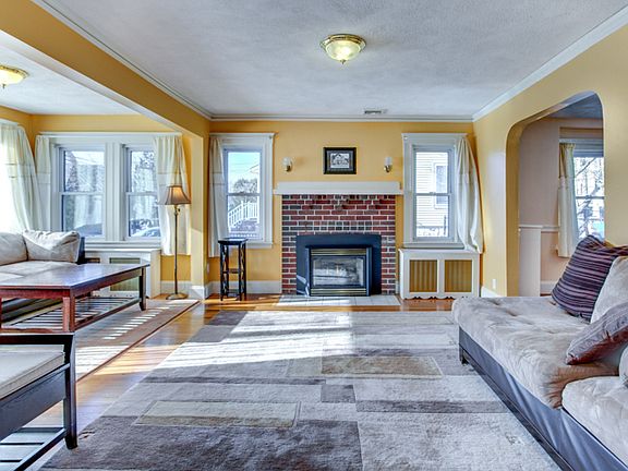 Video at www.139Sherwood.com - Enchanting home by the Middlesex Fells. Imagine curling up in front of the gas fireplace in the living room on a cold winter's day. The beautifully remodeled kitchen has quartz counters and a breakfast bar. The well thought out renovation includes a pantry with roll out shelves, hidden trash and recycling bin, and a deep double sink. The family room opens off the kitchen. This large room with vaulted ceiling and skylight will be one of your favorite places in your new home. There's a convenient first floor bath with a shower stall and laundry. Upstairs you'll find the 3 bedrooms and another full bath. The master bedroom has a full wall of closets. Hardwood floors flow throughout the home. Many updates like gas heat (2009), new 200 amp service & central air (2002) for when the heat waves of summer return. Large deck and nice side yard. Great location - 2 blocks to hiking in the Fells, less than a mile to Medford Square and 3/10th of a mile to Express Bus to Boston.