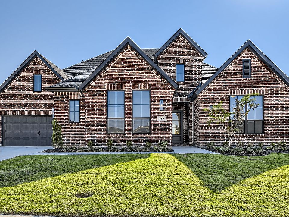 Located on a green belt with a fantastic view, this one-story home from our platinum series is spectacular. With an open concept and soaring ceilings, you are sure to be impressed. The study is located in the front of the home with vaulted ceilings. All four bedrooms in this home have private baths and walk in closets. After a long day, find your oasis waiting in the fantastic primary suite. Complete with a freestanding soaker tub, large walk-in shower with two door entry, dual vanities a makeup vanity and two primary closets all with soaring vaulted ceilings. The large kitchen has an apron front sink, level 8 quartz counter tops, extended cabinets, upgrade appliances including a double oven, the upgrade back splash is amazing. The oversized island has stained wood cabinets to add charm. The wall of windows in the back of home is perfect for enjoying the green space and breathtaking views. Hardwood floors, black fixtures, 8-foot doors and more upgrades make this home a must see!! The three-car split garage with its insulated garage doors, openers and epoxy garage floor, finishes out this remarkable home. Don't miss this amazing opportunity! Reunion Neighborhood is part of the award winning NISD school district with bus transportation. Easy freeway access to Fort Worth and DFW airport makes this a must-see home. Start making memories in your new American Legend Home!!