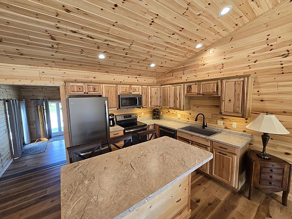 70' HOUGHTON LAKE CANAL FRONTAGE - BRAND NEW CONSTRUCTION! This gorgeous home has lake views and canal frontage, without lakefront taxes! It features double pane insulated JeldWen windows, a new 110' well, insulated toilets, and was built to enjoy lake views! Floor-to-ceiling white pine tongue & groove compliments the kitchen's hickory cabinets and GE black stainless appliances. 2x6 walls and blown-in insulation, and a very dry and well-lit custom crawl space. All furniture and appliances are included. The new driveway has a 10x12 pad, ready for a shed. A fishing pontoon and 2 jet skis are available for separate purchase. A sandy beach boat well provides easy in/out for kayaks and rowboats. PLEASE NOTE: Lake Township does NOT allow short term rentals.