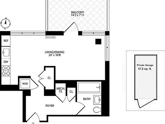 Best Value in Williamsburg for a corner loft-like apartment that is in MINT condition. TWO blocks from the L (Graham) stop, and 5 mins to the G train (Metropolitan) stop, the location is perfect. The immersive view of the Manhattan Skyline really sets this home apart. This kind of view is extremely rare for a studio. The balcony is HUGE, OVER 100SF, enjoy skyline sunrises and sunsets of all of the iconic landmarks including Empire State Building, and Hudson Yards. Custom-built bookcase and desk optimized layout, custom closets, custom blinds, recessed lighting, spa bath with rain shower and glass enclosure. Hardwood flooring and modern stainless steel appliances (KitchenAid and Liebherr) complete this truly unique home. IN UNIT WASHER / DRYER. ** PRIVATE STORAGE INCLUDED** ** Bike Storage INCLUDED** ** NO AMENITY FEE ( Gym, Terrace AND Roofdeck, etc,..) ** There IS a Broker Fee ** Amenity rich this building features: Bike storage, Roof Terrace with Manhattan views AND an outdoor terrace with hammocks, video intercom, fitness center, pre-wired for Verizon Fios throughout.