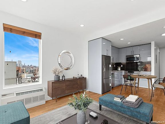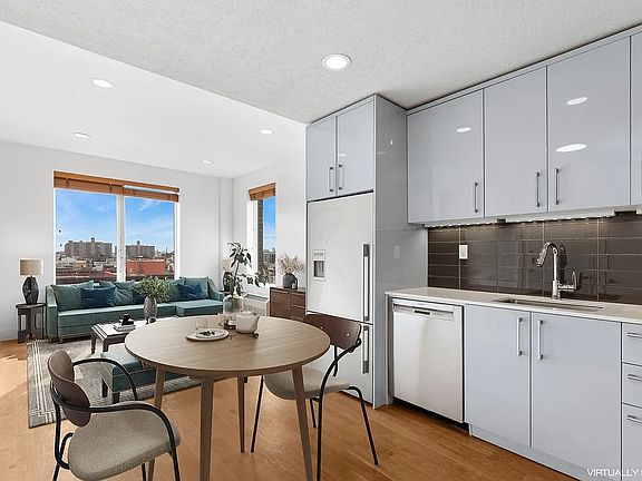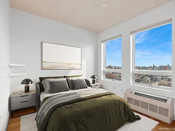 Sun-Drenched One-Bedroom with Unobstructed Views Perched on the 9th floor of a boutique elevator building in the heart of Williamsburg, Apartment 9B is a rare find. This bright and airy one-bedroom home boasts wide open, unobstructed southern views, flooding the space with natural light all day long. Key Features: Expansive Living Space: A sunlit living room with floor-to-ceiling windows that frame breathtaking skyline views. Modern Open Kitchen: Outfitted with sleek white quartz countertops, a glass-tiled backsplash, and premium stainless steel appliancesincluding a gas range, a dishwasher, and a fridge with a built-in ice maker. Tranquil Bedroom: Comfortably fits a king-sized bed and enjoys southern exposure for a peaceful retreat. Spa-Like Bathroom: Designed with Italian tiles, a deep soaking tub, a rain shower, and heated floors for ultimate relaxation. Convenience at Every Turn: White oak flooring throughout, an in-unit washer/dryer, and a large private storage cage included with the apartment for no additional charge. Building Amenities: Boutique elevator building with a fitness center 2nd-floor terrace with BBQ grills and lounge seating Rooftop deck showcasing stunning panoramic views Bike storage and on-site parking (frequently available for rent) Prime Williamsburg Location: Just 2 blocks from the Graham Ave L train and close to the Metropolitan G, ensuring an effortless commute. Nearby to all of Williamsburg's best dining, shopping, and nightlife, with Greenpoint's vibrant scene just minutes away.
