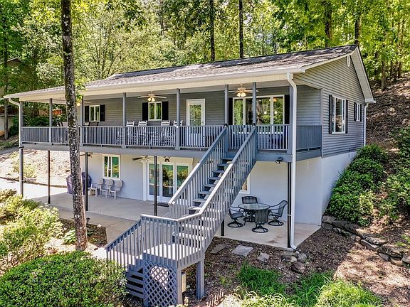 Looking for a Lake Keowee waterfront home for income and enjoyment? This is a rare find indeed. Private road access off of Doug Hollow Road and a short drive to the Lighthouse and to The Cabana, this home has a shared drive at its entrance which is gated. The Keowee Life. Live it. Love It. Lake It. Welcome to one of the rarer finds on Lake Keowee, as it is unrestricted and on a beautiful lot with mountain views from the porch, dock, and living room window. The property is located at the mouth of the cove and has deep water off the end of the dock and no homes or docks can be seen on the opposite side of the cove, just the serenity of trees and nature. There is plenty of parking, as there is a circular driveway at the front entry of the home, plus two additional parking areas, one at the top of the property and one at the bottom of the property at the back of the house. The front entry has been updated with beautiful stone steps and flagstone leading from the circular drive to the front door. The open floor plan invites you in as soon as you open the door. The remodeled kitchen adds light and functionality to the space with an island for gathering. The living room area leads to an oversized covered porch that runs the length of the house. This is the best spot to relax with your loved ones, enjoying morning coffee and cocktail hour later in the day while taking in the incredible view of the emerald water and the Blue Ridge mountains. The walk to the covered dock is gentle, short and sweet! No burning in the legs as you walk to the house from the dock. The main level of the home has 2 bedrooms that share the full bathroom in the hallway and a Master bedroom ensuite. There is a spiral staircase that leads down to the lower-level recreation space. There is a flex room on this level that is used for a bunk room, and an oversized unfinished laundry room and storage area that could be converted into a fourth bedroom if needed. Now’s your chance to get on Lake Keowee without the hefty price tag and the opportunity to make vacation rental income if desired. This home is being sold “Turn-Key” with the exception of the owner’s personal items. Located 2 minutes from The Lighthouse restaurant and Cabana. The boat is being offered for sale separately. Live It. Love It. Lake It. **Check out the video on Realtor.com**