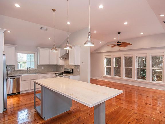 This classic island home has been updated and redesigned creating a modern beach cottage. Fresh and inviting exterior colors welcome you home where you'll enjoy open living/dining/kitchen spaces with high ceilings, abundant natural light throughout and fantastic outdoor living spaces. Enjoy the quiet serenity and beautiful oaks from your front porch or retreat out back and enjoy the large deck overlooking the custom pool and patio surround. New ''live'' fencing has been built along with specially selected plantings to create a true outdoor retreat. Indoors the home offers a new custom kitchen with appliances including a gas range, new bathrooms with a custom tile shower in the master, fresh paint, new lighting, new hardware, new custom made heart pine flooring, private master suite & more