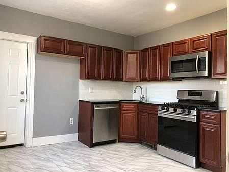 Large 3 bedrooms 1 baths fully renovated apartment with finish basement for rent. 7-10 minutes walk to Field Corner, Shawmut or Ashmont Station; 3 min walk to bus stop that will take you to Ashmont Station or Dudley Station. Minutes from Expressway 93, and close to local hospital, shopping. This gorgeous apartment have 3 large bedrooms that fit king size bed with good size closet; 1 large size living room and family room, 1 bathroom with double sink vanity, 1 brand new eat in kitchen with red cherry cabinet and granite counter top, brand new Samsung stainless steel appliances and dishwasher. Washer and Dryer Hook up in each unit. The apartment features high ceilings, new gas heating system, and new electrical and plumbing throughout, new window, newly sand hardwood floor throughout, new paint, front and back porch, huge fence in back yard for you to barbecue and enjoy, plenty of parking. Laundry Hookup in Unit -
