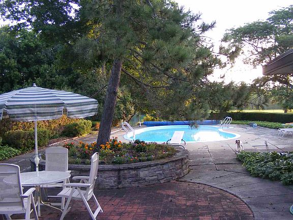 This contemporary ranch is reminiscent of a Frank Lloyd Wright design. The simple lines and use of windows to allow for natural light throughout is amazing. The home was built to entertain from the open floor plan on the main floor to the spacious family room on the lower level there is lots of room. The park-like yard has an expansive slate patio and a large kidney shaped pool with underwater lighting.