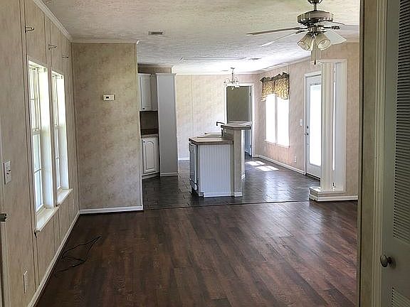 This very clean mobile home is located on just over 3 acres of land on a dead end street. Large deck great for entertaining. 2 car attached carport. Open floor plan with living, dining and kitchen. Split bedrooms and bathrooms. Master has large walk in closet with separate bathtub and shower. Large kitchen island with bar. All kitchen appliances. Move in ready.